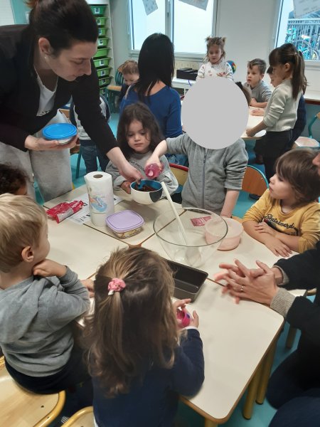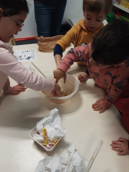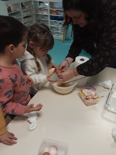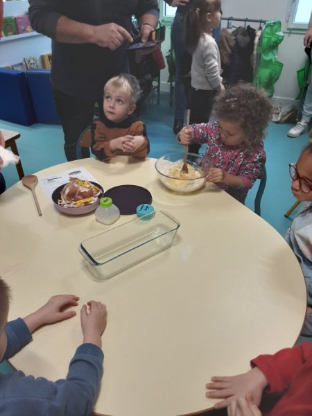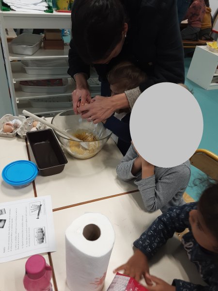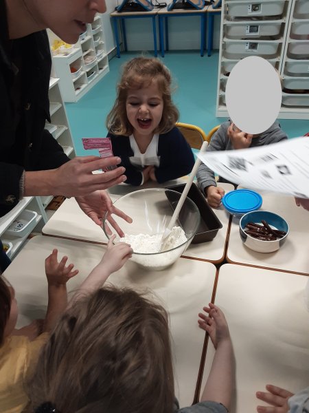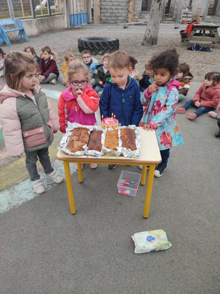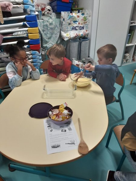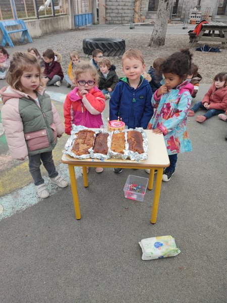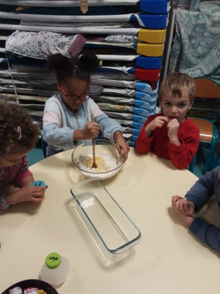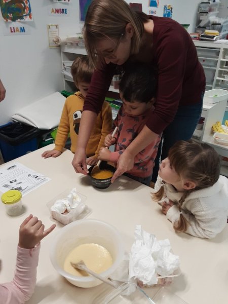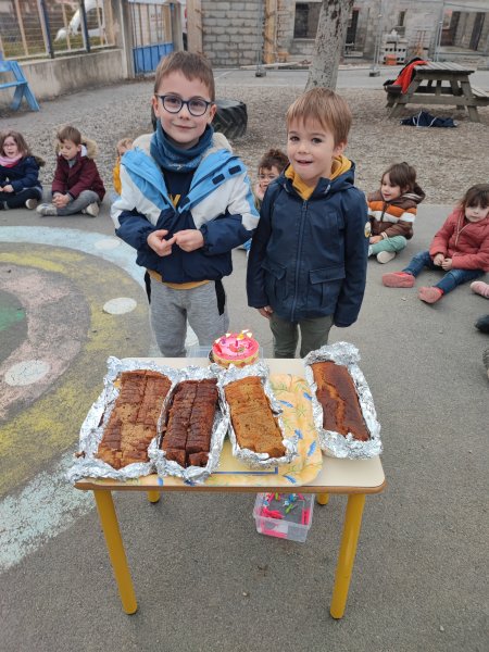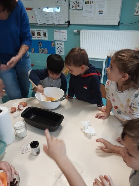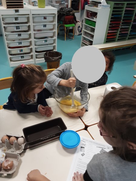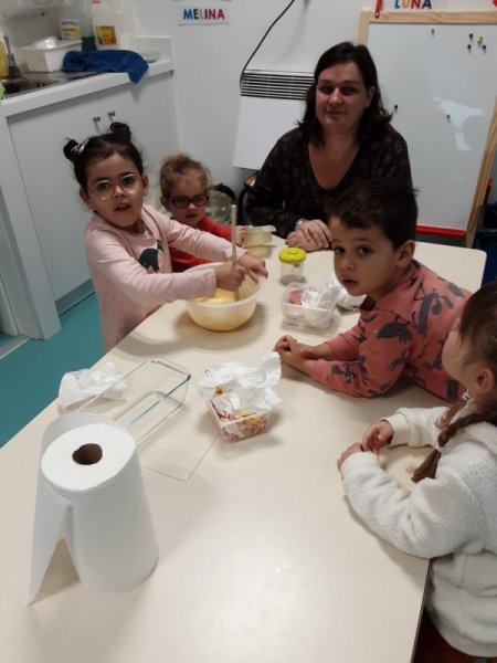 Le vendredi 17 novembre, nous avons fêté les anniversaires des mois d’octobre et novembre. Nous avons réalisé un cake aux carambars.