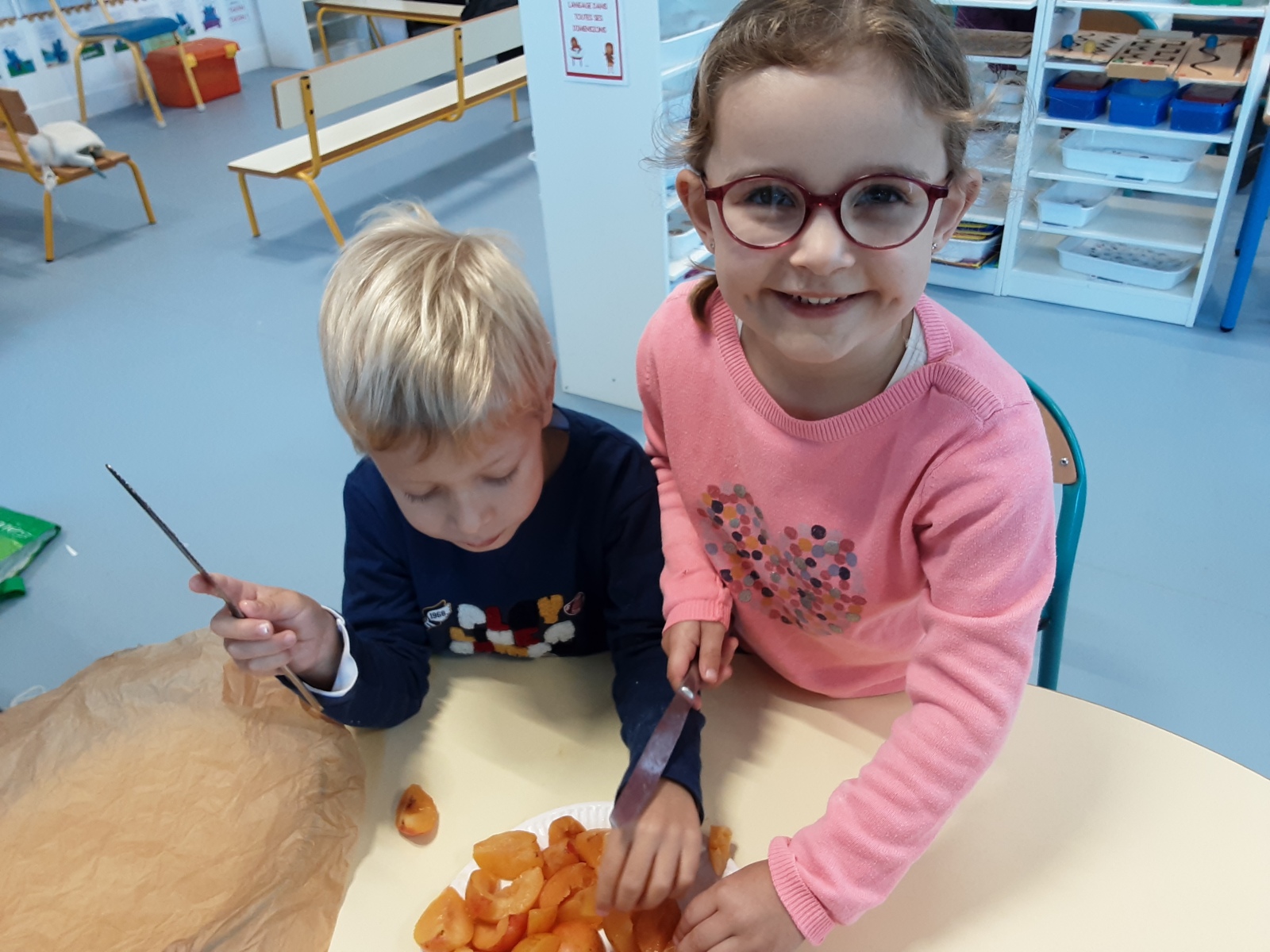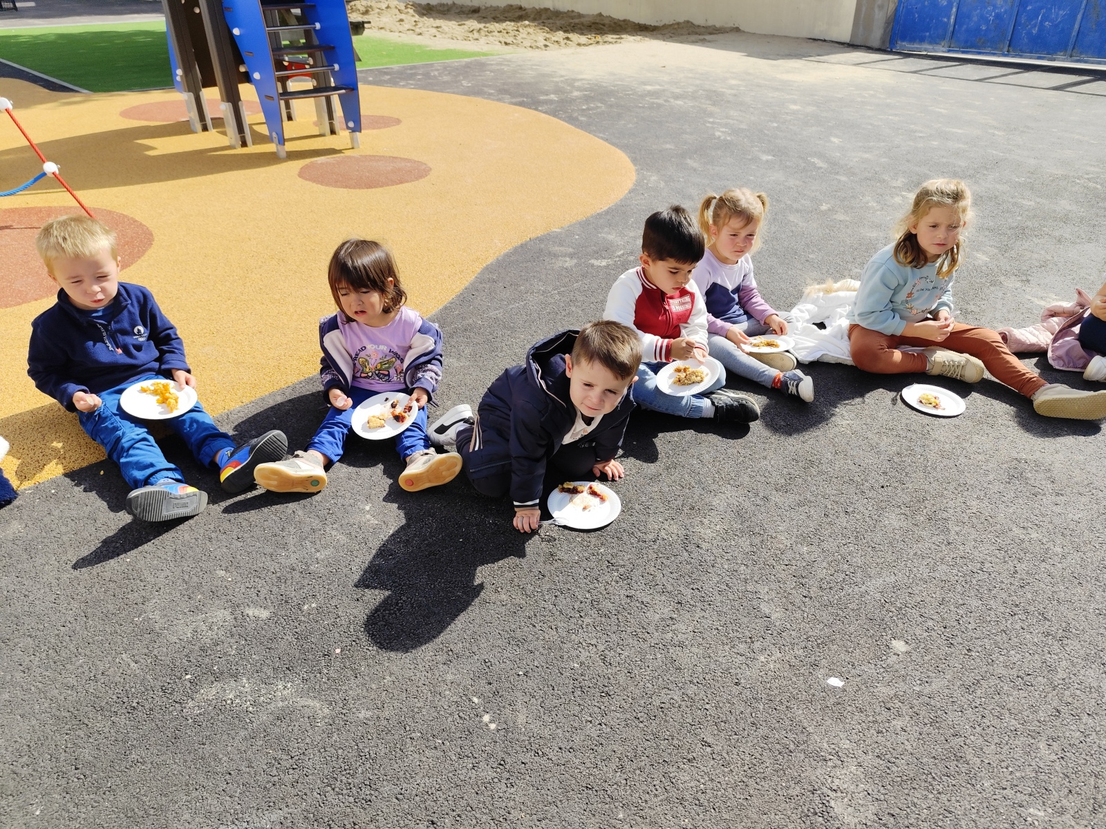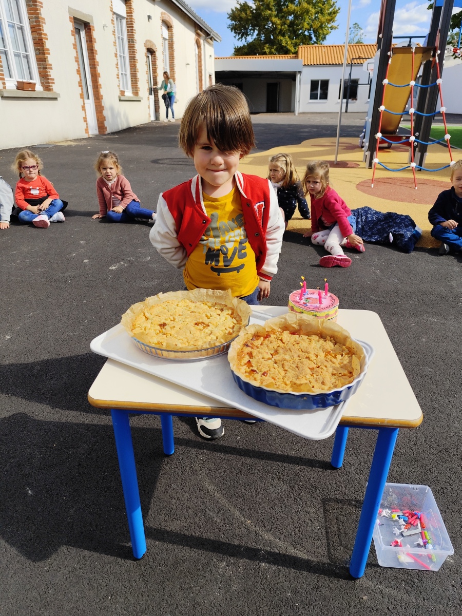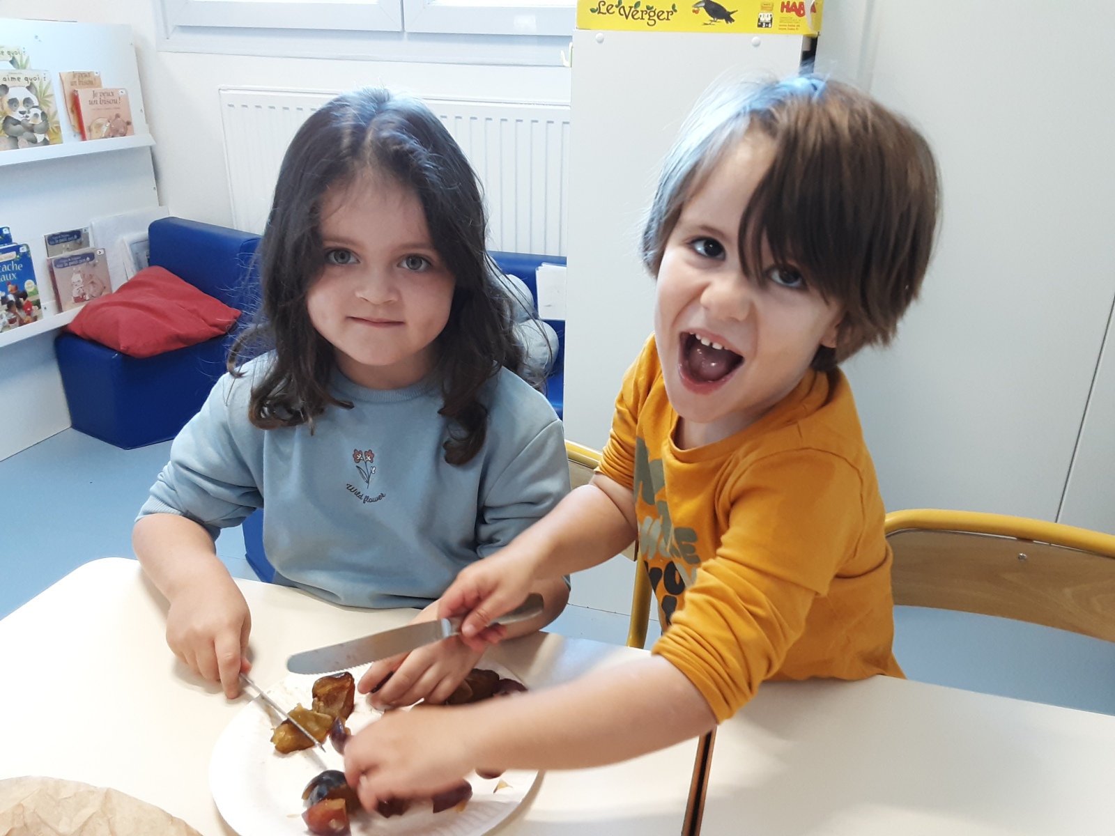 Le vendredi 13 septembre, nous avons fêté les anniversaires du mois d’août. Pour cela, nous avons préparé un crumble aux prunes. C’était délicieux !