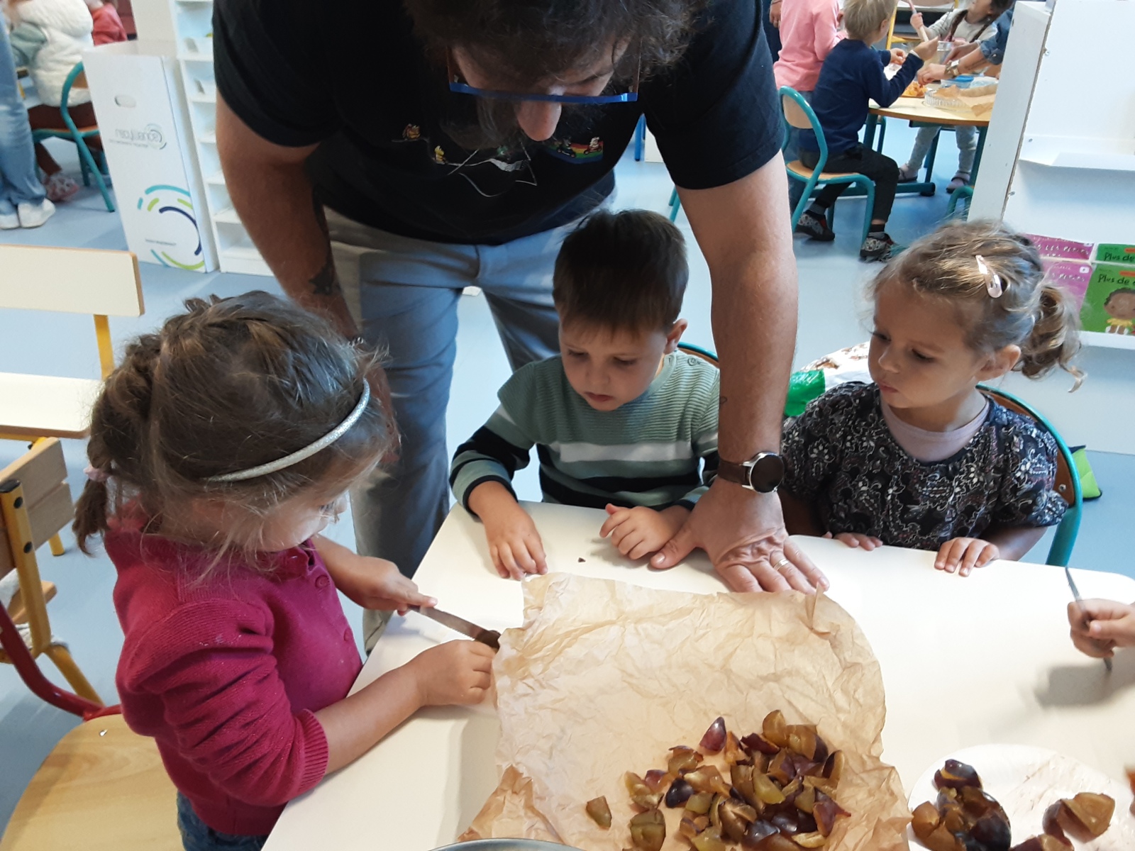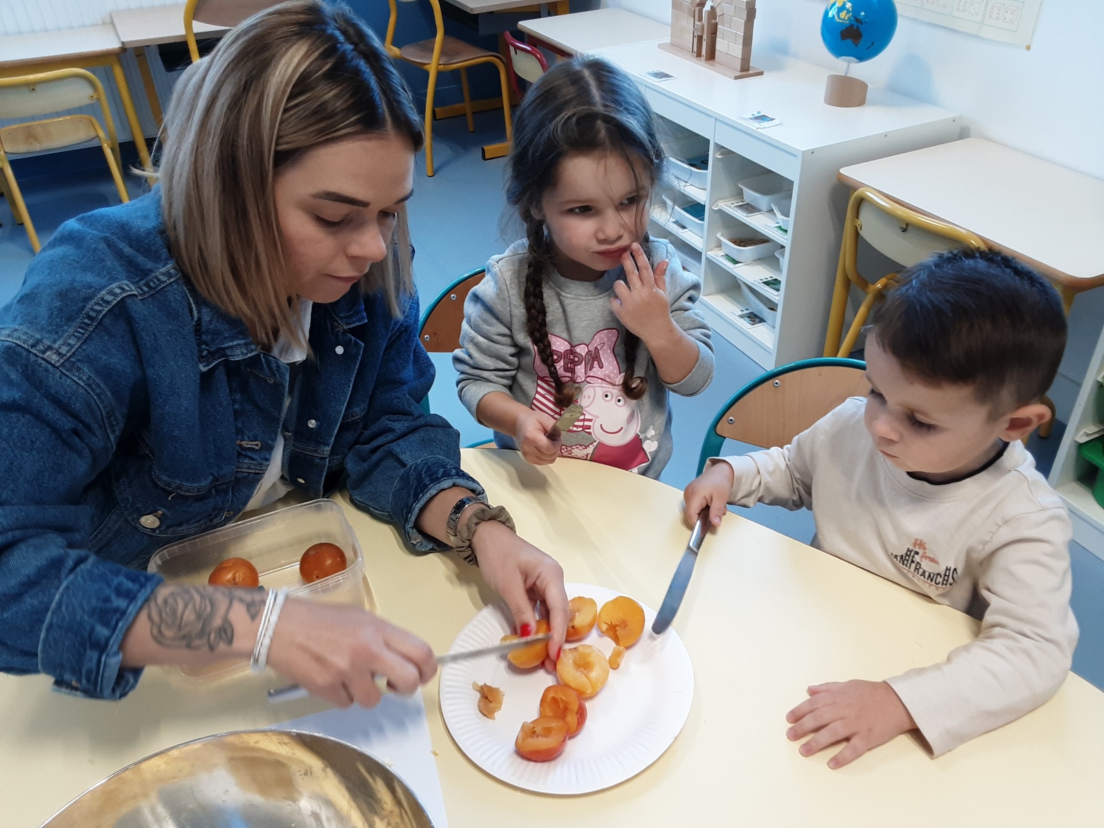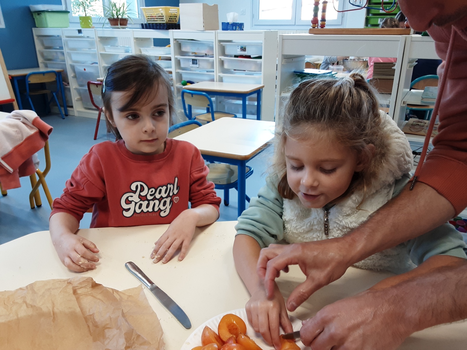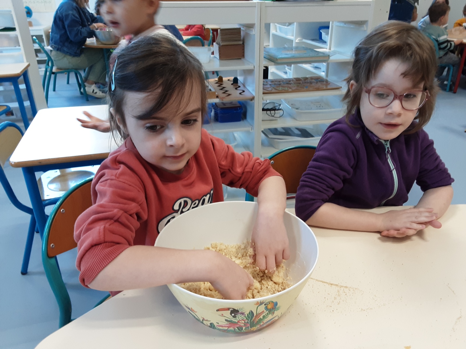 Le vendredi 13 septembre, nous avons fêté les anniversaires du mois d’août. Pour cela, nous avons préparé un crumble aux prunes. C’était délicieux !