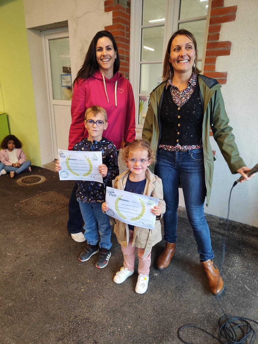 En fin d’après-midi, toute l’école s’est réunie sur la cour pour présenter les délégués fraichement élus et leur remettre un diplôme.