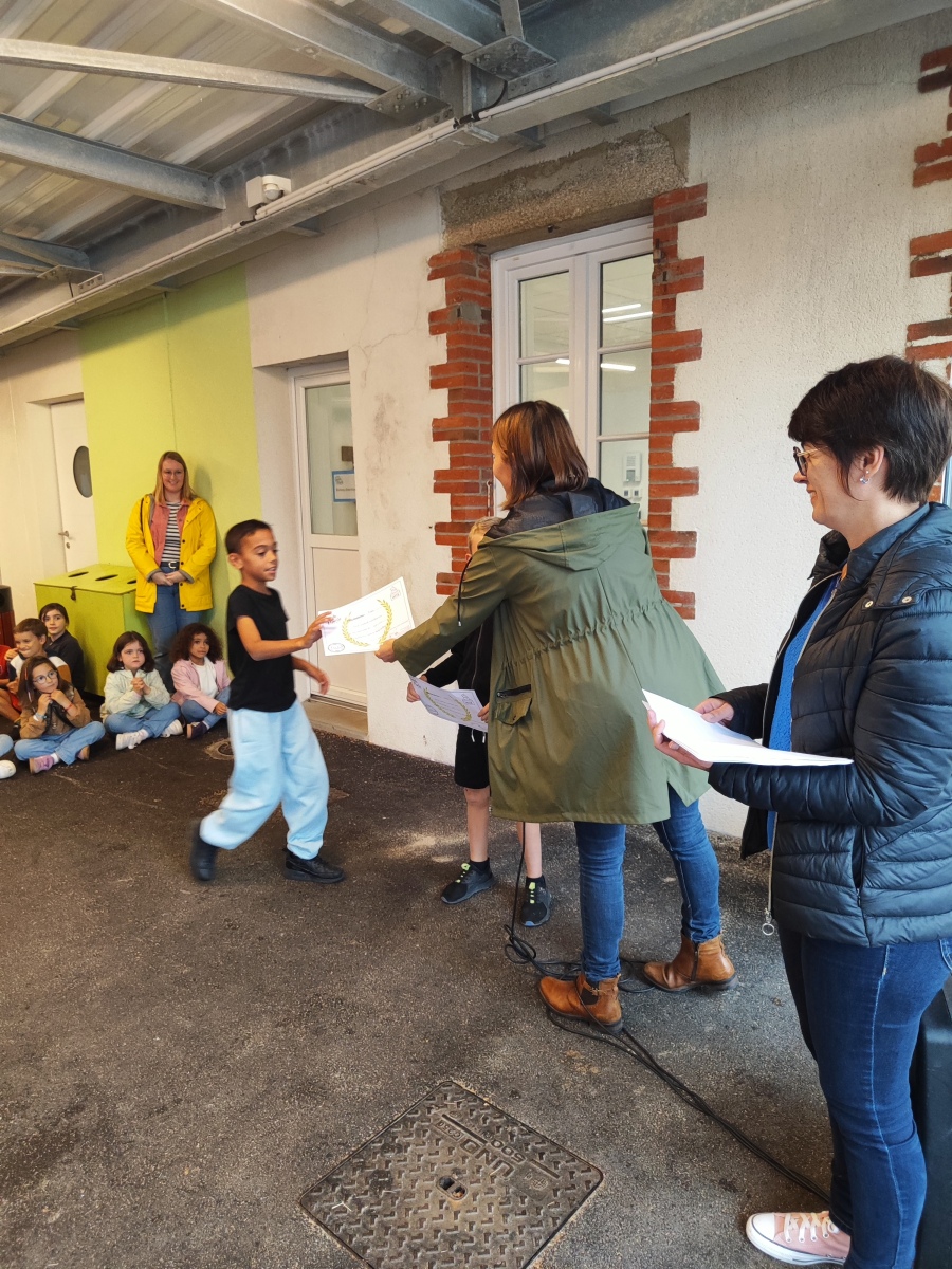 En fin d’après-midi, toute l’école s’est réunie sur la cour pour présenter les délégués fraichement élus et leur remettre un diplôme.