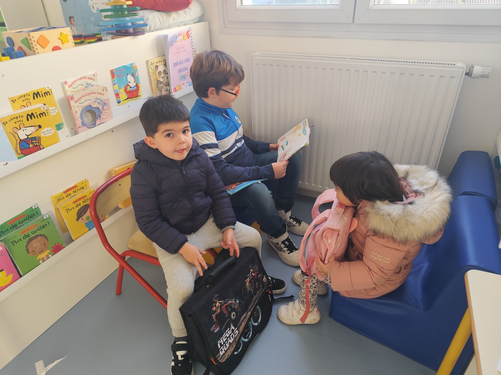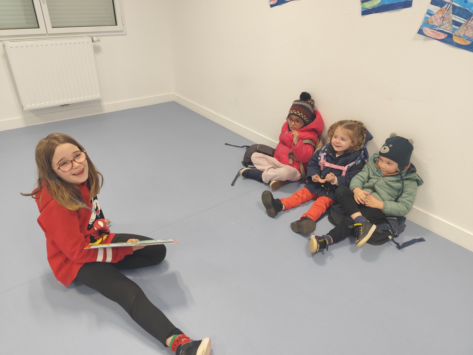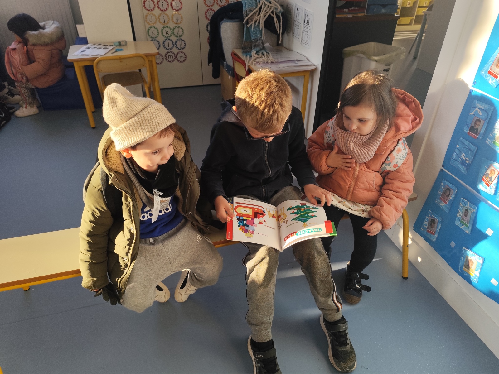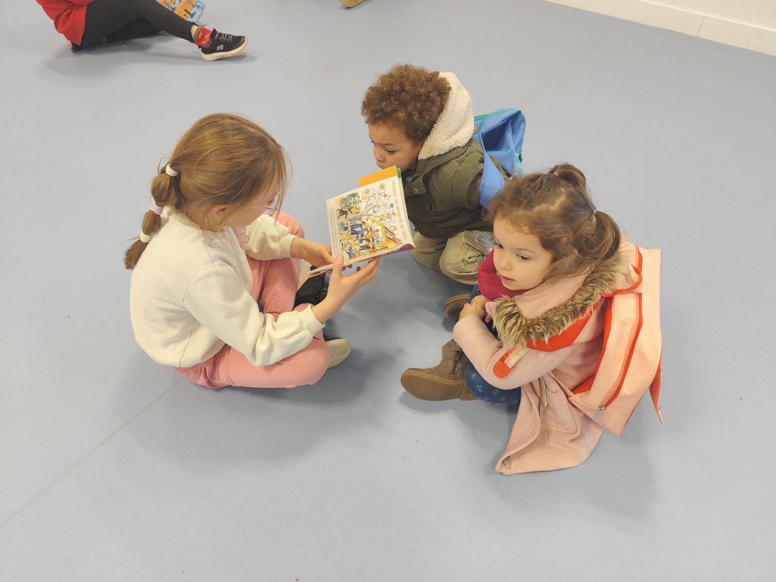 Tous les jeudis, en fin de journée, les élèves de CE1 viennent dans la classe de TPS-PS-MS-GS de Stéphanie pour lire des histoires aux plus jeunes. Les CE1 se perfectionnent ainsi en lecture et les maternelles sont ravis de ce moment partagé. Un partage apprécié par tous !