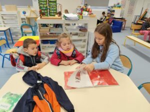 Pour les plus grands, c’est l’occasion de travailler la lecture à voix haute, de prendre confiance et de découvrir le plaisir de lire pour quelqu’un. Ils préparent soigneusement leur livre à l’avance, afin de pouvoir offrir une lecture fluide et agréable.