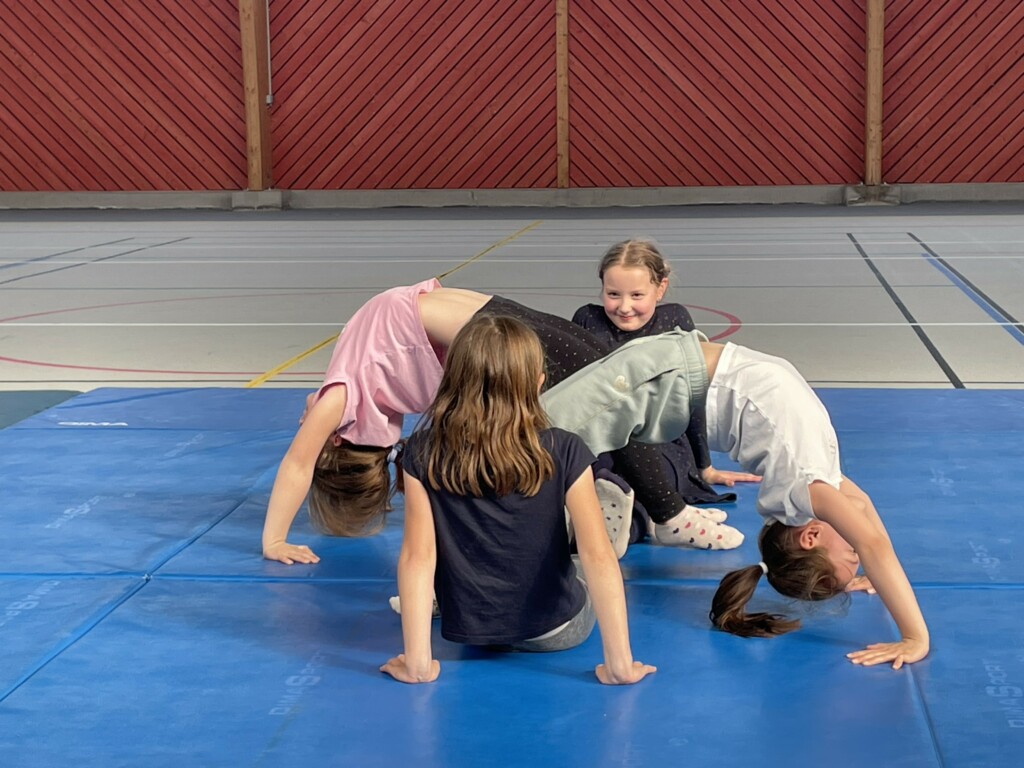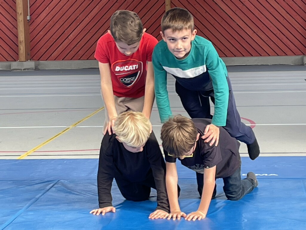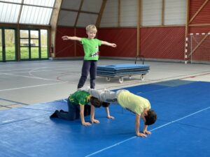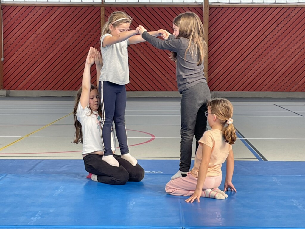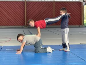 Les élèves de CE1 ont été initiés à l’acrosport avec Romain, notre animateur sportif. Il a fallu plusieurs séances d’entrainement pour arriver à des figures élaborées. Tous ont beaucoup apprécié l’activité.