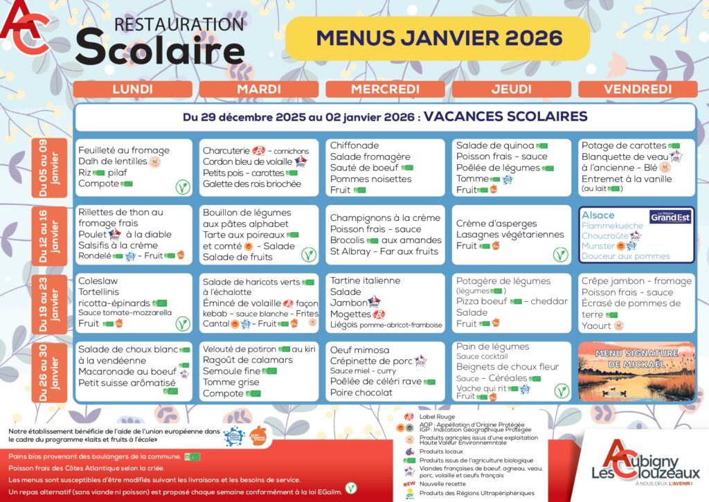 Menus de cantine