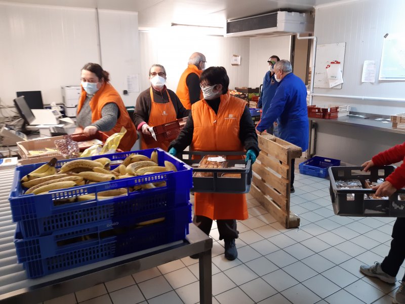 Dans un 1er temps, l’équipe enseignante est allée sur place dans les locaux de la Roche sur Yon et a pu découvrir toute l’organisation et la logistique nécessaires pour que chaque jour des denrées alimentaires soient récupérées, triées, stockées, réparties et acheminées.