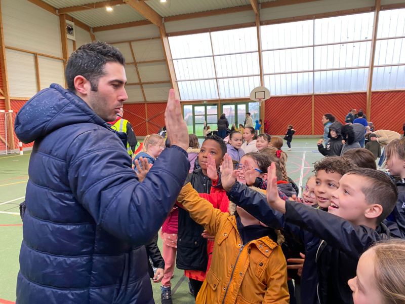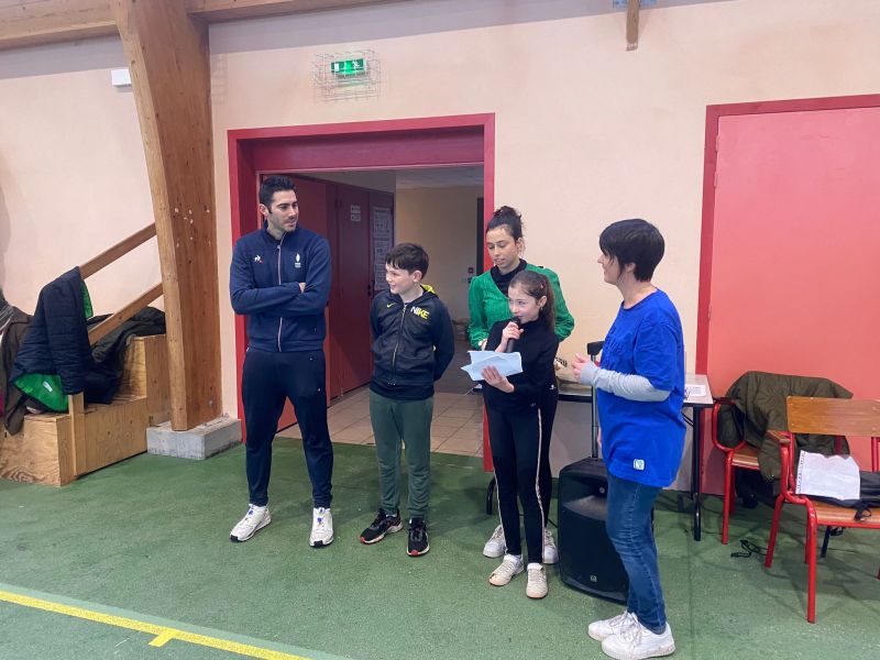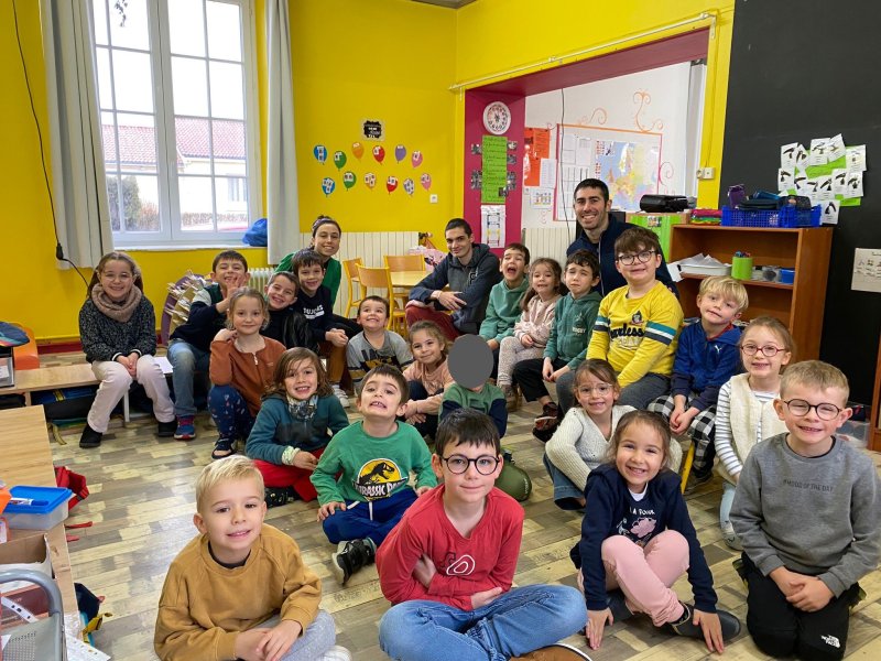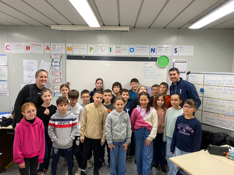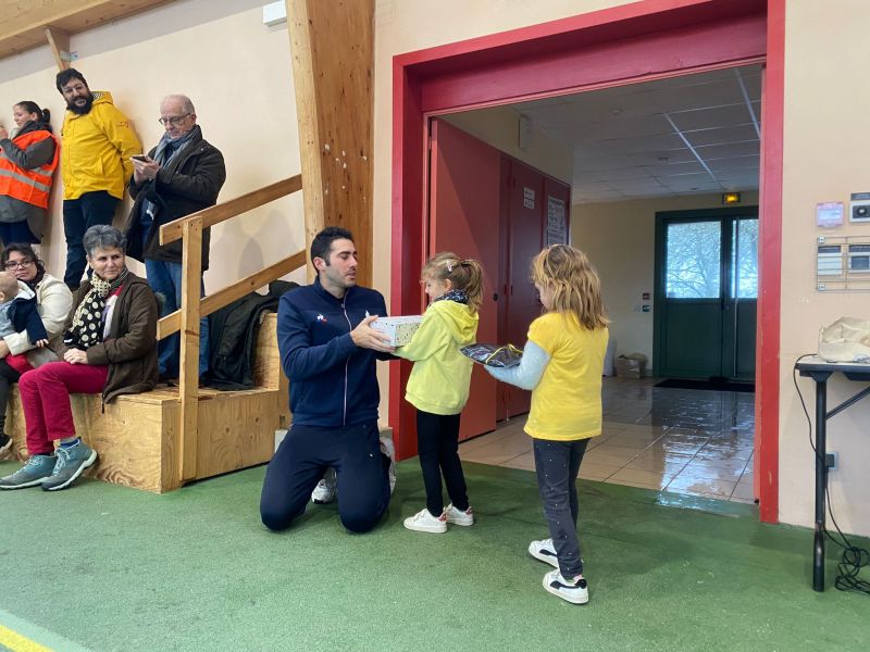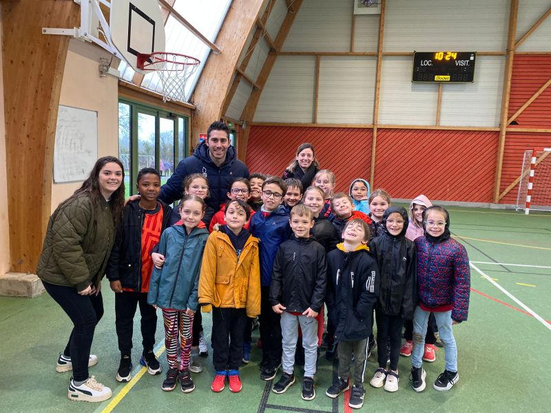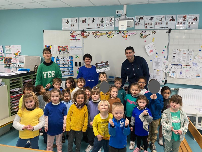 Notre école a participé au relais du Cœur organisé par l’UGSEL Vendée en lien avec les jeux olympiques. Nous avons reçu le cœur ce matin dans notre école. A cette occasion, un grand sportif Jordan Cuelho nous a rejoint. Il nous a apporté le cœur et chaque classe s’est relayée lors d’une course à ses côtés. Bravant la pluie, les enfants ont couru avec plaisir et envie. Notre course s’est terminée à la salle de sport. Les enfants y ont défilé à la manière des délégations de sportifs aux jeux olympiques, puis ils se sont placés pour former les anneaux olympiques. Jordan a ensuite répondu aux questions que les enfants avaient préparées en classe. Pour terminer ce moment festif, les élèves ont réalisé une danse sur la musique des jeux olympiques. De retour à l’école, Jordan Cuelho est passé dans toutes les classes pour signer une dédicace. Nous remercions vivement Jordan pour sa participation à cet évènement sportif ! Nous remercions également les parents qui ont aidé à l’organisation et ceux qui sont venus partager ce moment avec nous !