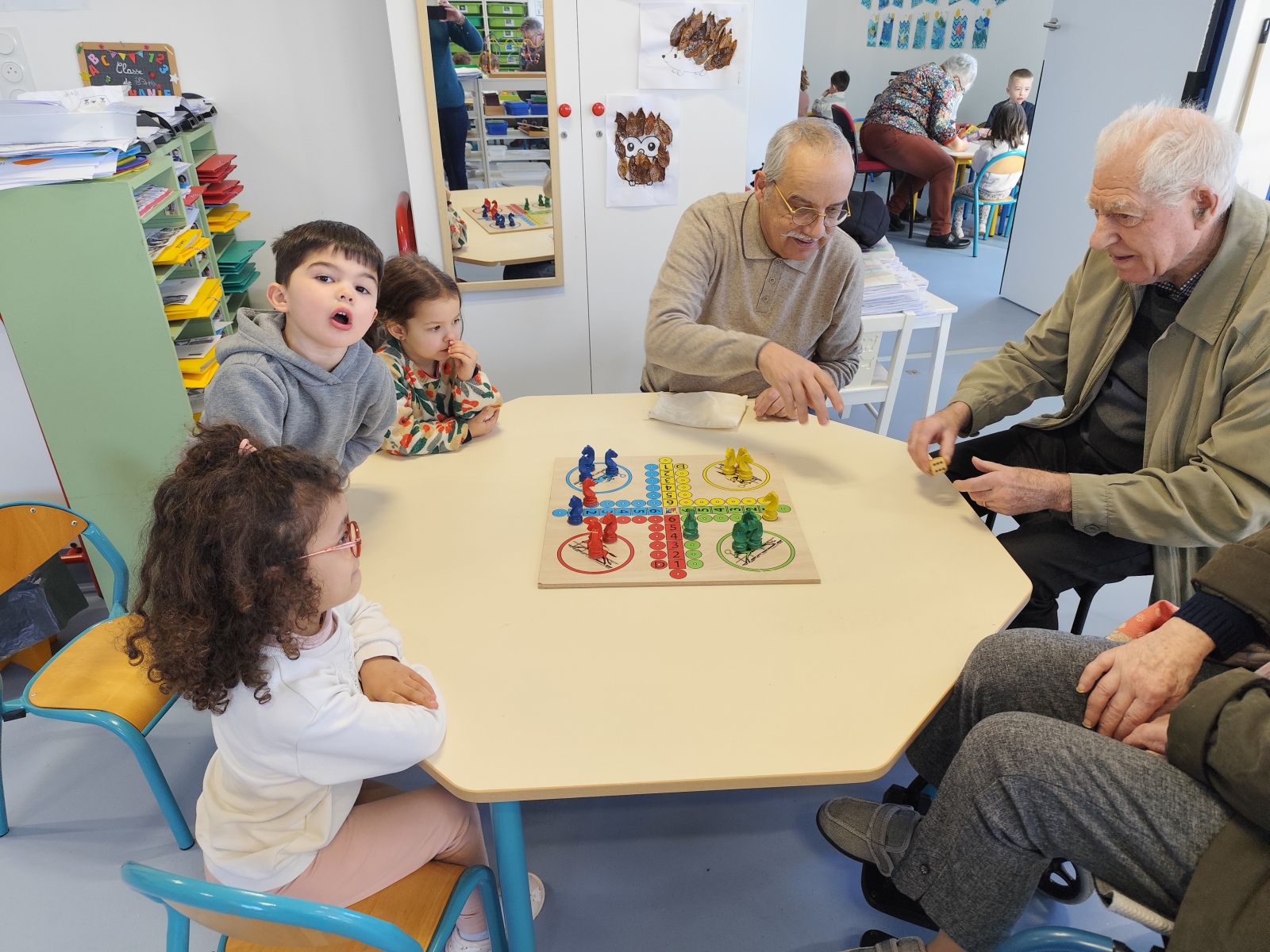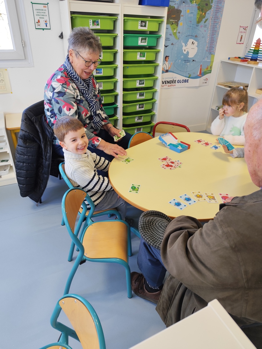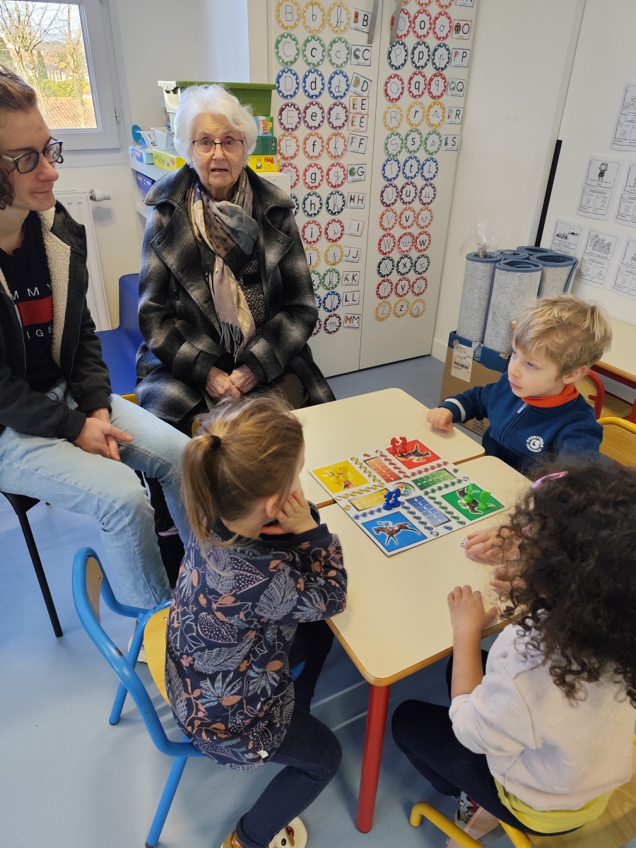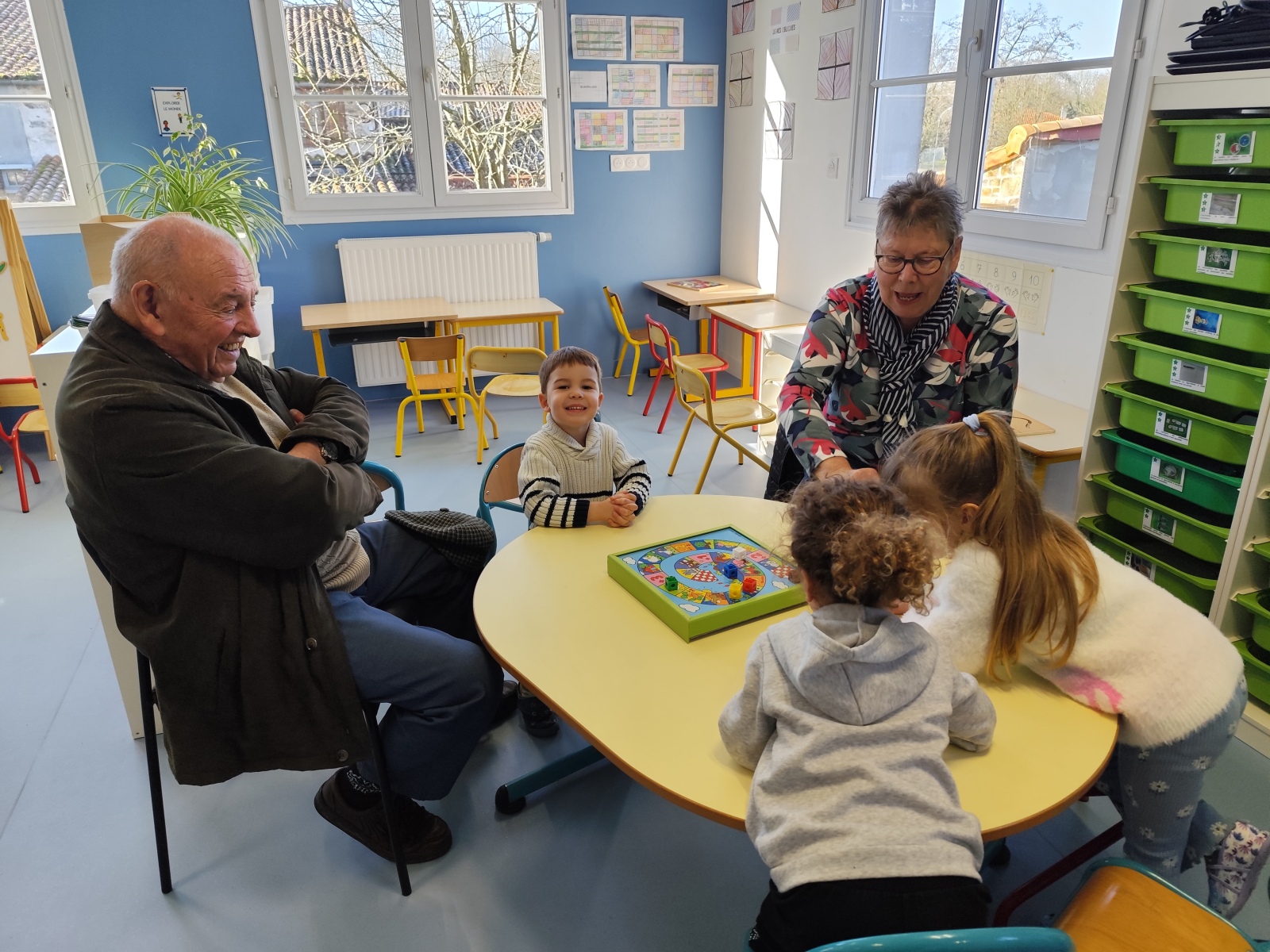 Le mardi 4 février, des résidents de l’Ehpad d’Aubigny sont venus à l’école pour partager un temps de jeux de société avec les TPS-PS-MS-GS de la classe de Stéphanie. Petits et grands ont apprécié ce moment de jeux !