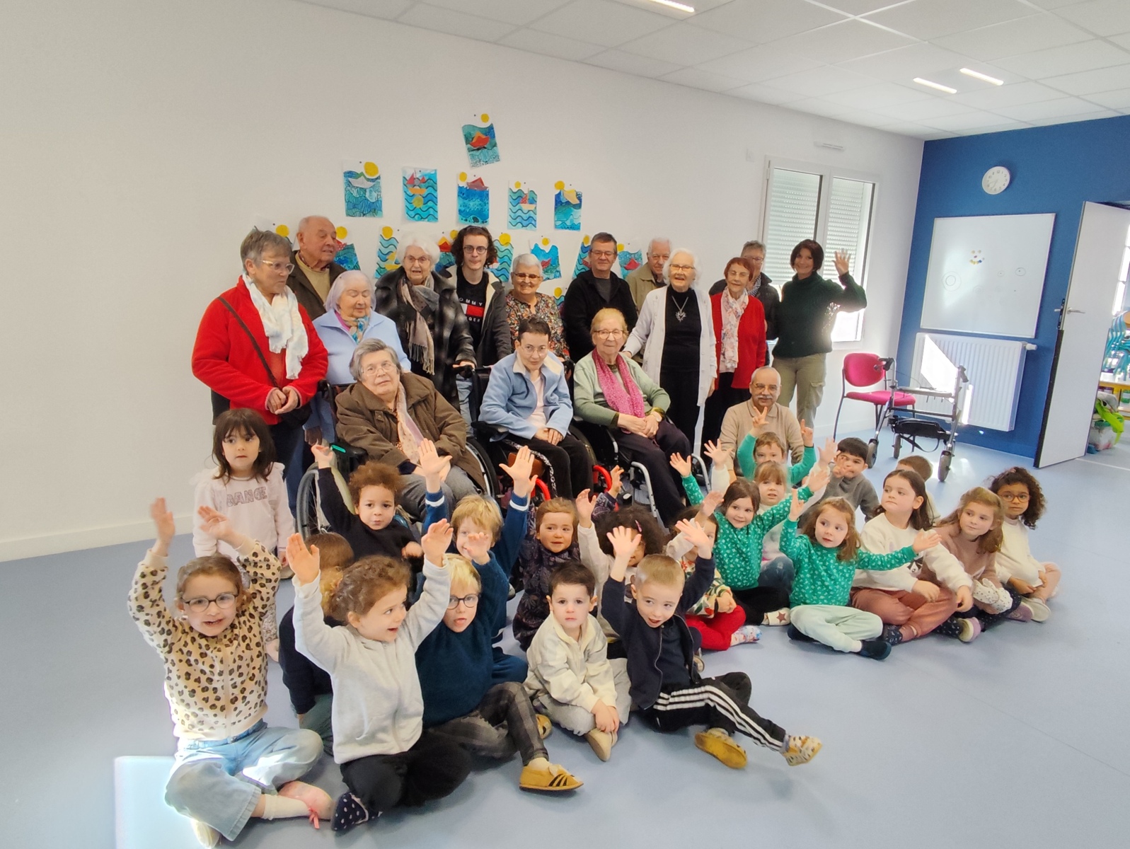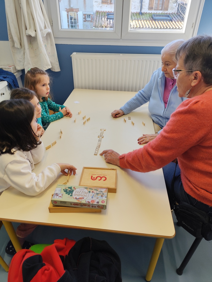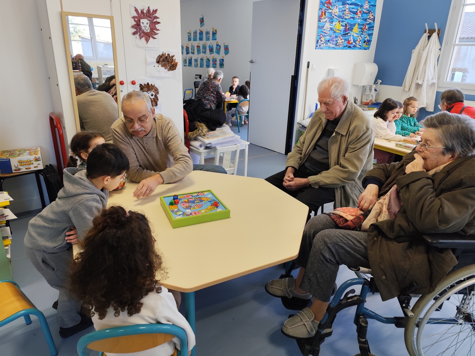 Le mardi 4 février, des résidents de l’Ehpad d’Aubigny sont venus à l’école pour partager un temps de jeux de société avec les TPS-PS-MS-GS de la classe de Stéphanie. Petits et grands ont apprécié ce moment de jeux !