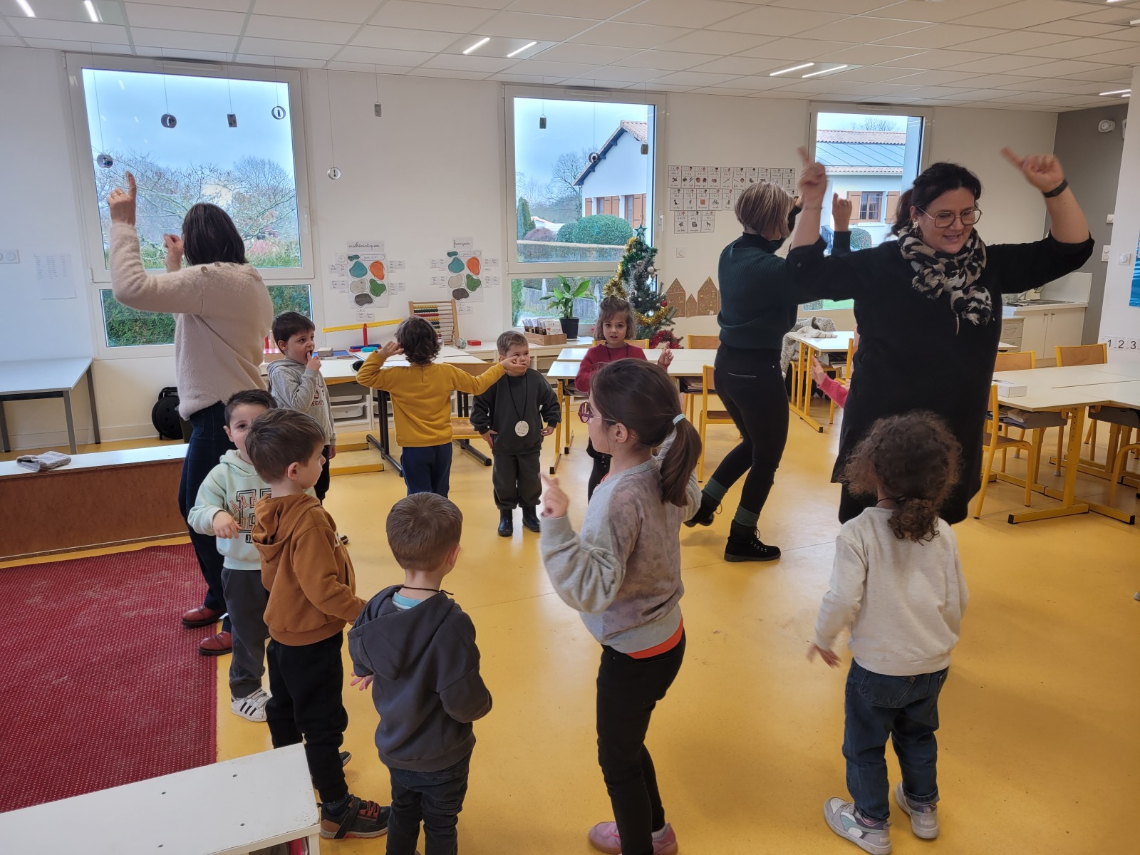 Durant de la matinée du lundi 19 janvier 2026, les élèves de maternelle et de CP ont participé à un temps fort sur la confiance: confiance en soi, confiance en l’autre. Un sujet riche et complexe qui a été développé et expérimenté à travers six ateliers faisant varier motricité, défis, histoire, chant, danse, jeux de cartes et de plateau, bricolage…