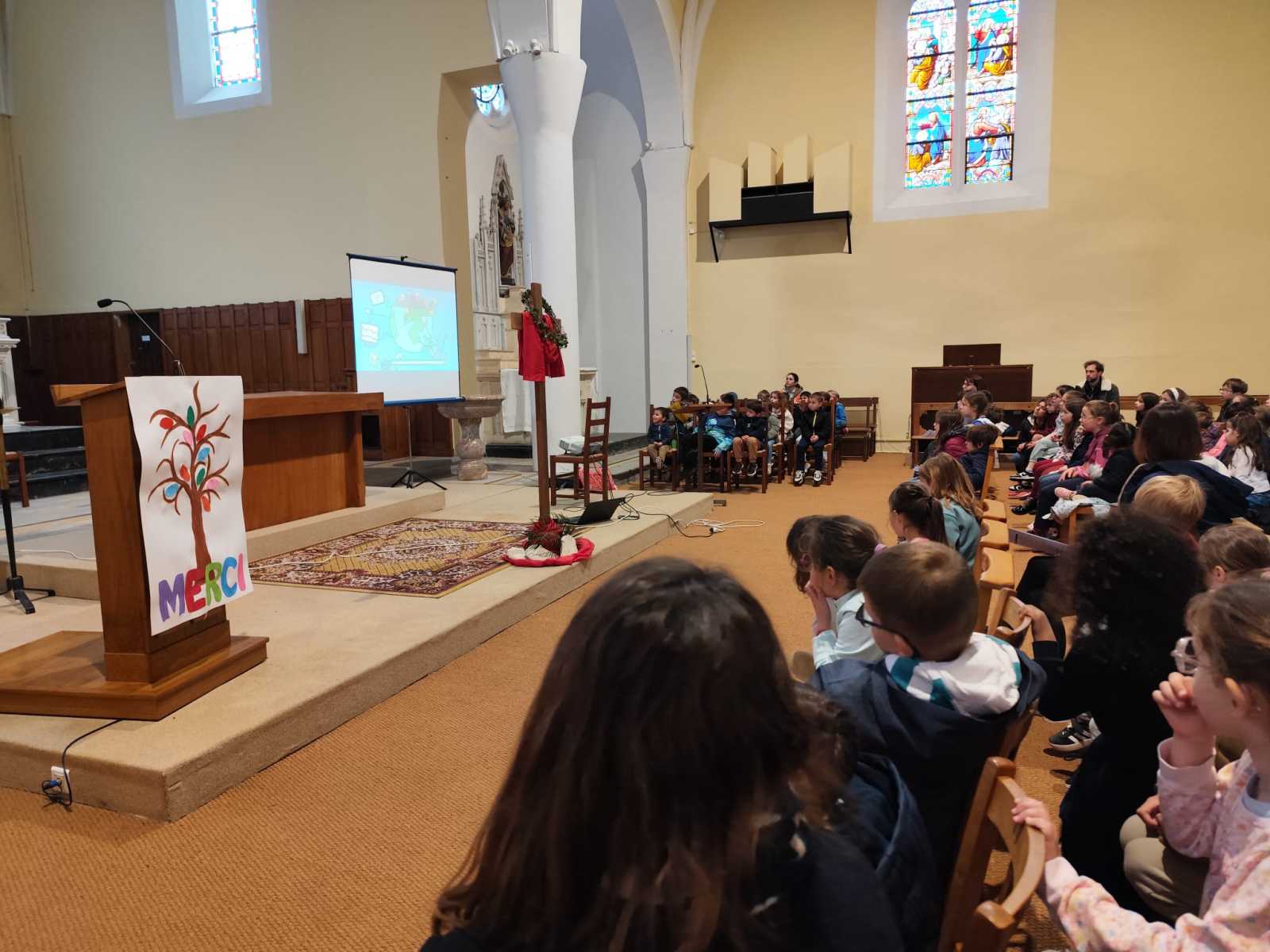 Nous avons poursuivi cette matinée-temps fort par des activités retraçant la semaine sainte et la fête de Pâques. Puis, nous nous sommes tous rendus à l’église pour une célébration de Pâques sur le thème de la vie, la vie si belle et si fragile à la fois.