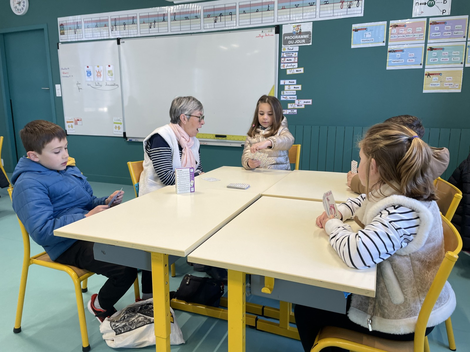 La journée a commencé par un temps de jeux de société partagés dans les classes. Parents et grands-parents étaient invités à venir jouer avec les enfants. Un grand merci à tous ceux qui ont répondu présents : ce fut un très chouette moment de convivialité, rempli de rires, de concentration et de plaisir de jouer ensemble.