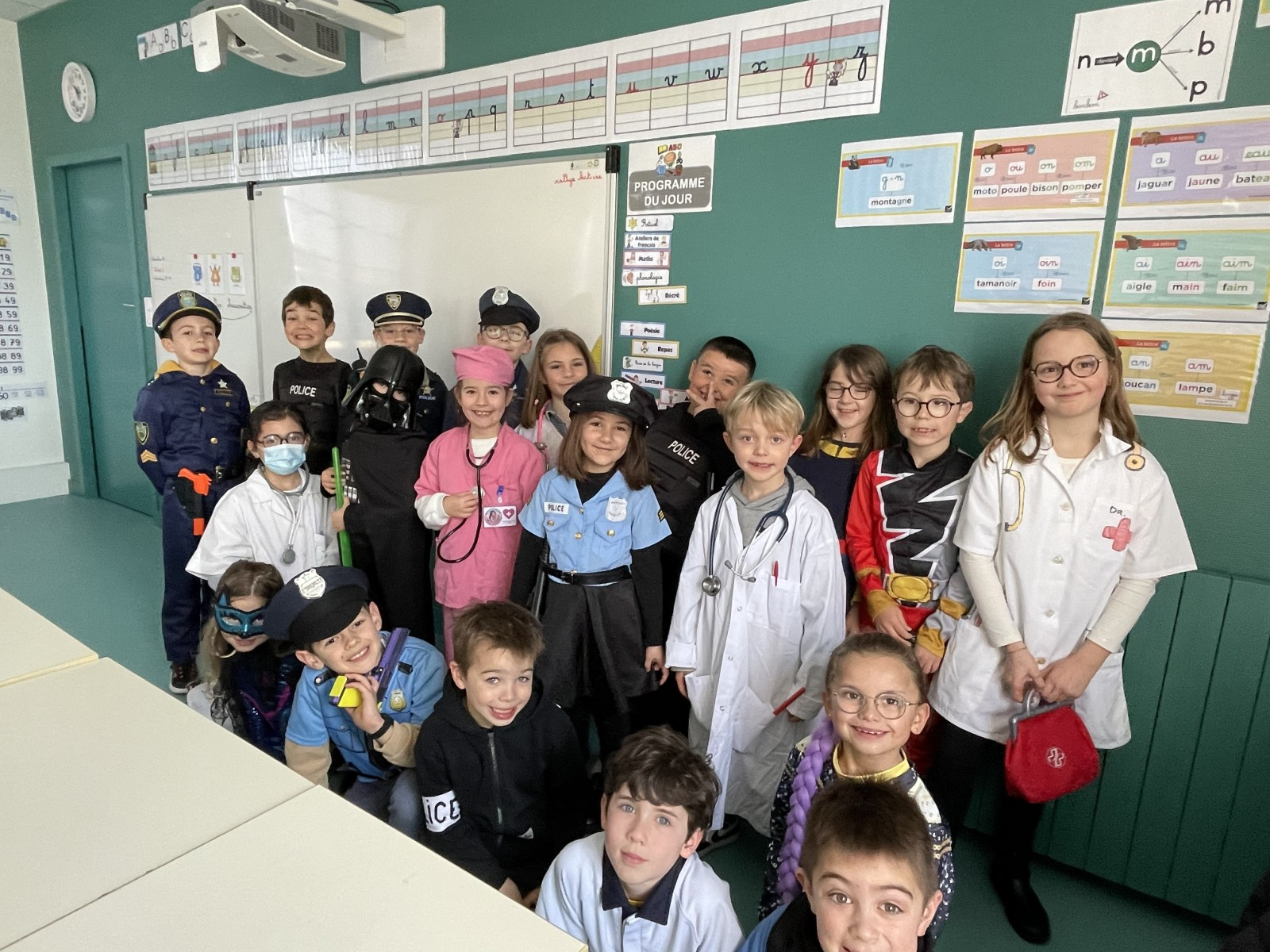 Petits et grands ont revêtu leurs plus beaux déguisements en lien avec notre thème d’année « Écoutons, aidons, agissons ». Nous avons vu défiler de nombreux pompiers, médecins, policiers, mais aussi des super-héros du quotidien et des super-héros imaginaires prêts à sauver le monde !