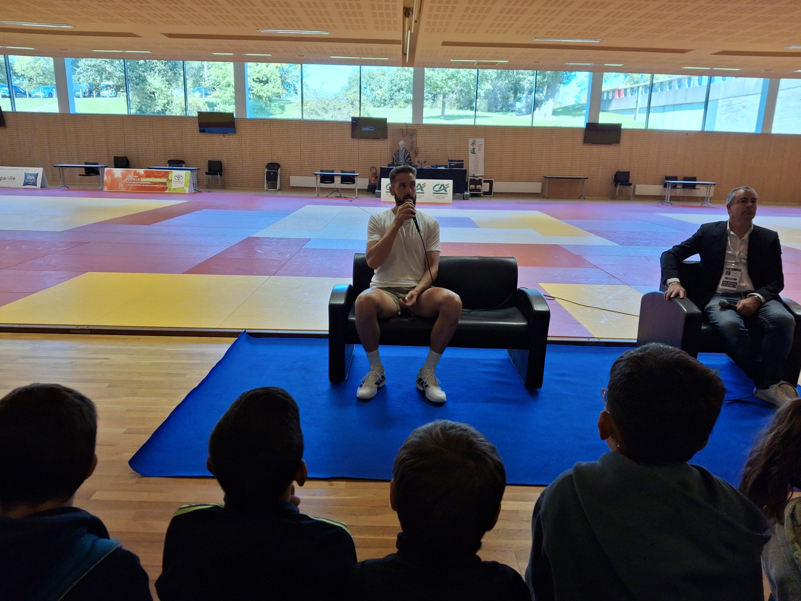 Dès notre arrivée, une belle surprise nous attendait : la rencontre avec Albano Olivetti, joueur professionnel. Les élèves ont pu lui poser plein de questions sur son parcours, son entraînement et sa vie de tennisman. Un moment très enrichissant !