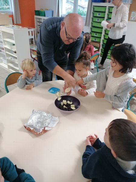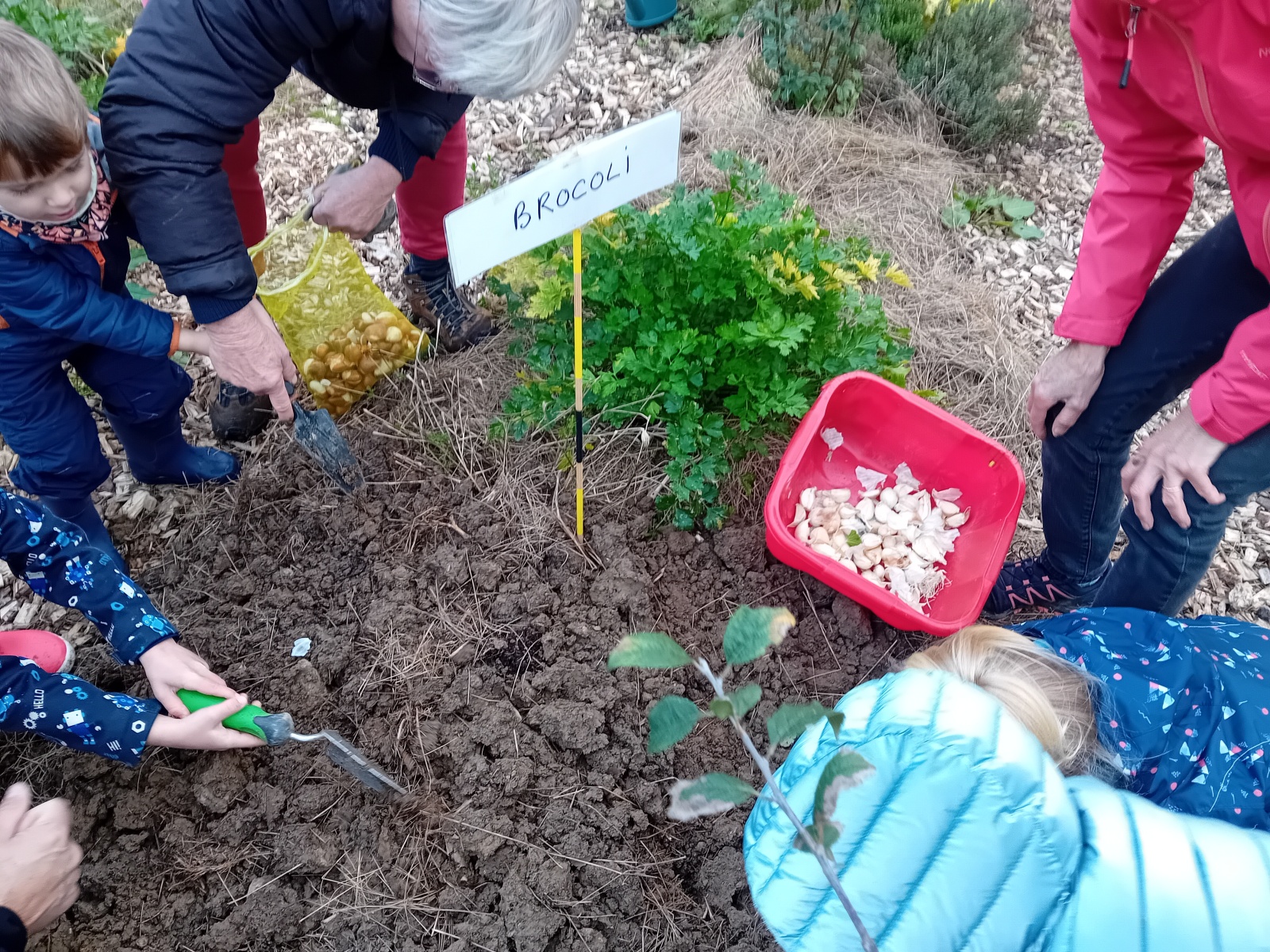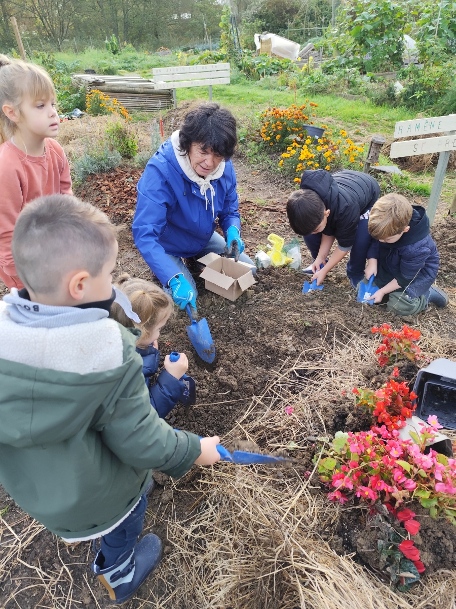 Le jeudi 6 novembre, nous sommes allés visiter le jardin pédagogique de la commune. Nous y avons été accueillis par des bénévoles et avec eux nous avons participé à quatre ateliers : un atelier de nettoyage, désherbage et préparation du sol ; un atelier de bouturage d’aromatiques ; un atelier de plantations de bulbes de fleurs et enfin un atelier visite du jardin. Nous avons apprécié ce moment de partage auprès des bénévoles. Un grand merci à eux !